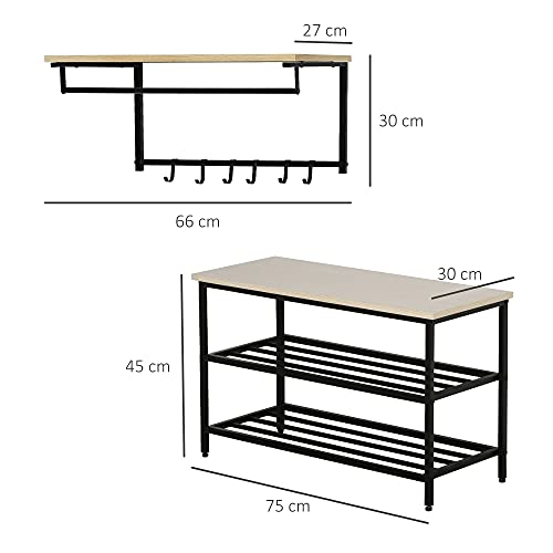 Homcom Mobile per Ingresso con Panca Scarpiera e Appendiabiti con 6 Ganci, in Legno e Metallo Nero