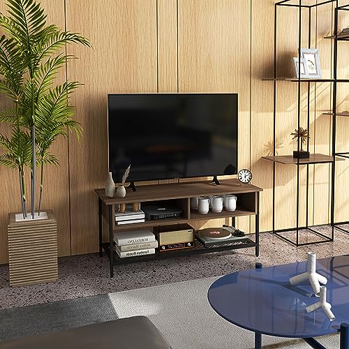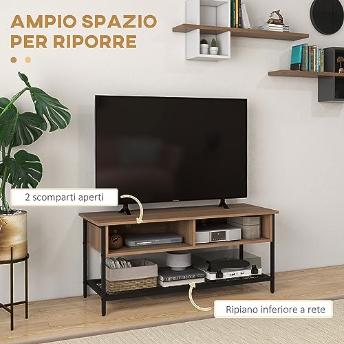 HOMCOM Mobile Porta TV fino 48" in Stile Industriale, Mobile Basso con Ripiani in Legno e Acciaio, 110x40x48cm, Marrone e Nero