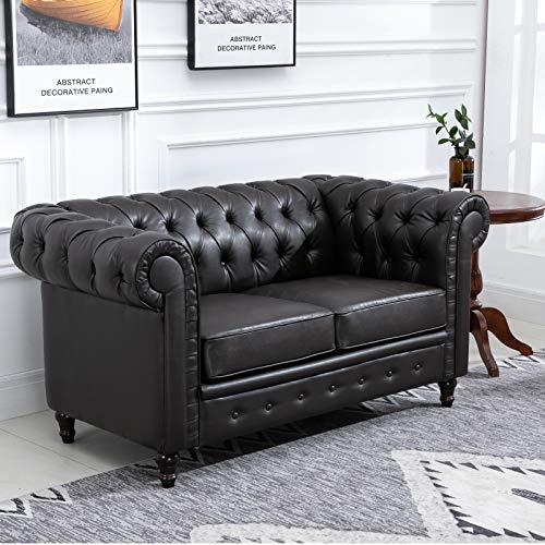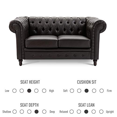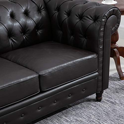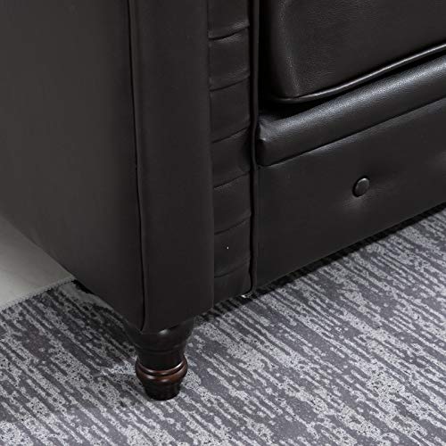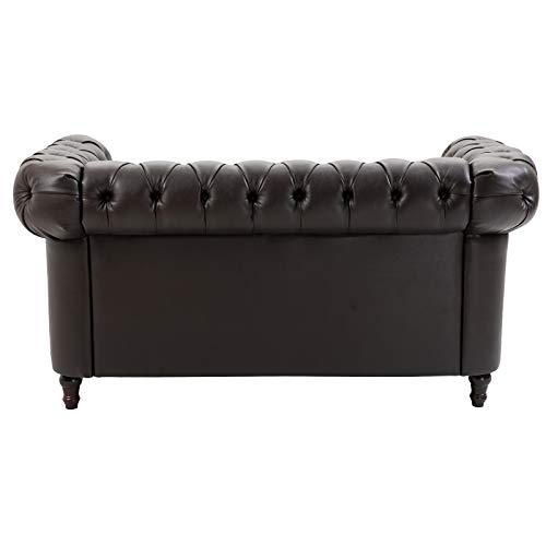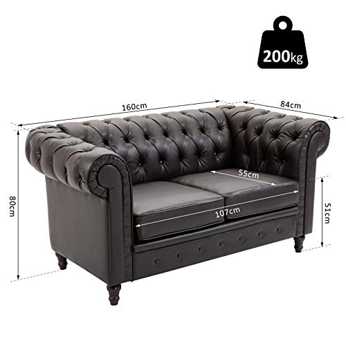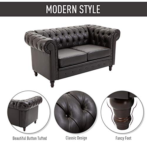 Homcom Moderno Divano Due Posti Stile Chesterfield in Ecopelle Marrone Scuro con Gambe in Legno e Struttura Solida