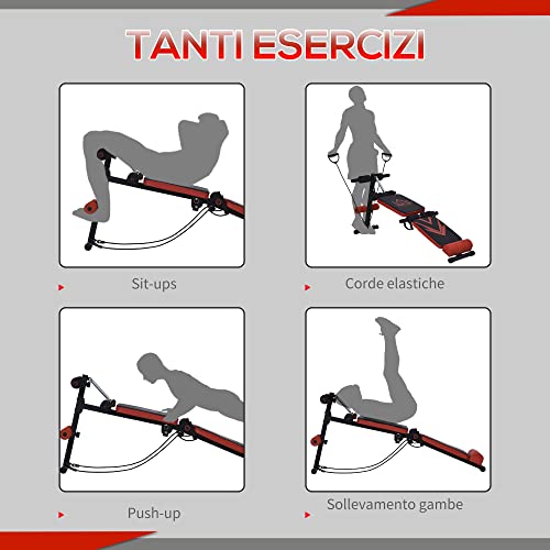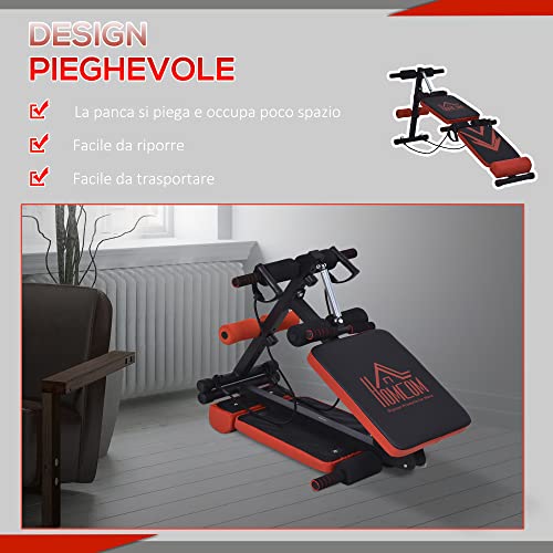 HOMCOM Panca per Addominali Pieghevole Imbottita con Altezza Regolabile e Bande Elastiche, Nera e Rossa 47x135x62cm