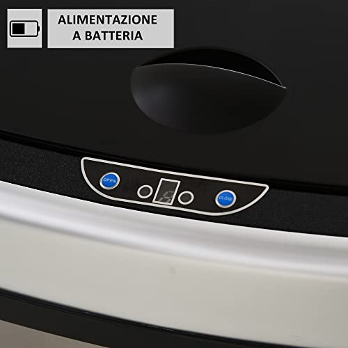 HOMCOM Pattumiera Cestino Bidone con Coperchio a Sensore ad Infrarossi per Cucina Bagno Capacità 58L in Acciaio ABS 40.9 × 28.9 × 68cm