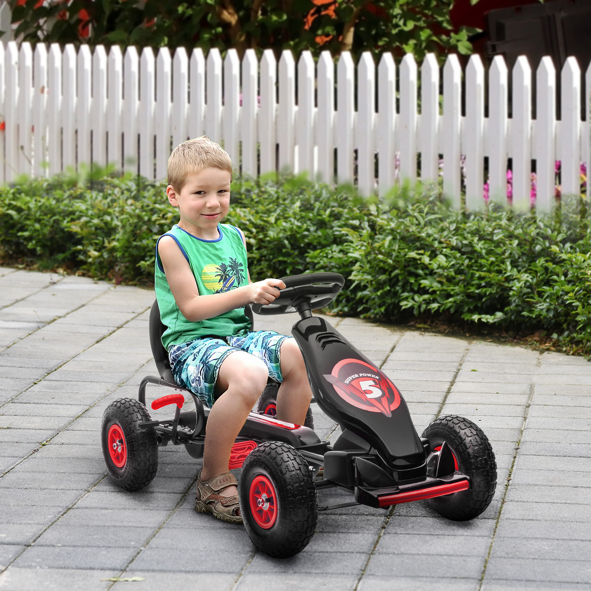 Fai divertire i più piccoli all'aperto con il go kart a pedali HOMCOM! Il sedile regolabile è progettato per adattarsi a bambini di diverse età, da 5 a 12 anni. Il kart per bambini è dotato di sistema di frenata contropedale e a mano, che lo rende facile da usare e sicuro. Le ruote in gomma sono gonfiabili e con sistema di ammortizzazione, e adatte a muoversi su diversi tipi di terreno. Per i tuoi bambini è ora di iniziare a pedalare verso nuove avventure!