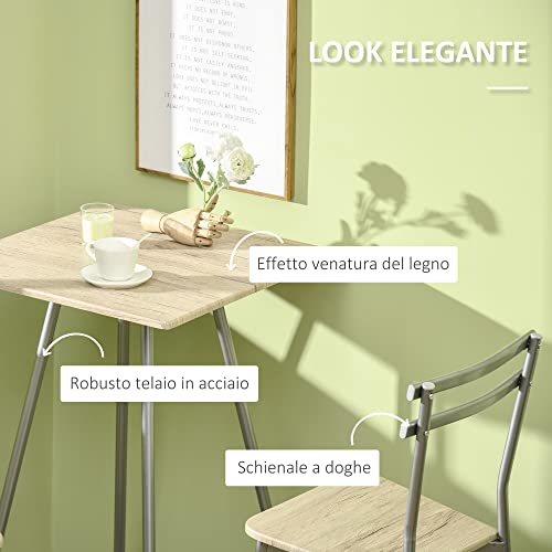 Homcom Set da Bar 3 Pezzi con Tavolino Alto e Sgabelli da Bar in Legno e Acciaio, Set per Cucina e Salotto, Color Quercia