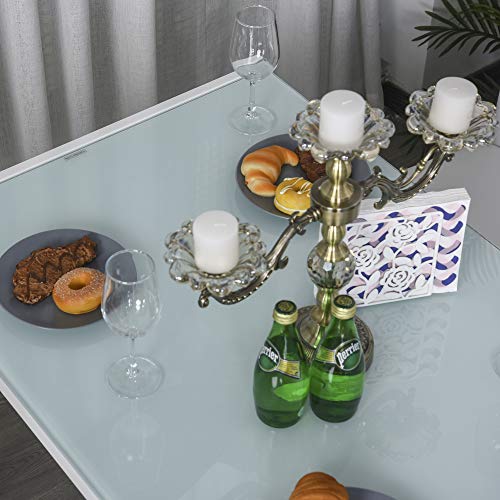 HOMCOM Set 5 Pezzi con 1 Tavolo e 4 Sedie per Cucina o Sala da Pranzo in Finta Pelle, Metallo e Vetro Temperato, Bianco