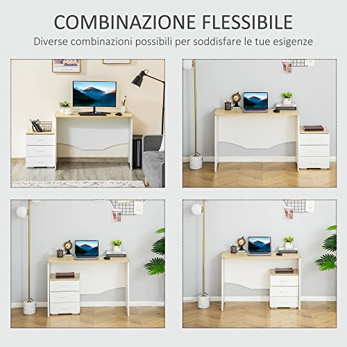 Homcom Scrivania con Cassettiera Moderna in Legno, Scrivania PC per Camera e Ufficio, Bianco, 110x55x75cm