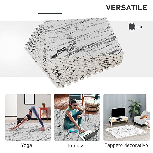 HOMCOM Tappeto Puzzle Morbido in EVA Antiscivolo con Effetto Marmo, 9 Pezzi e 18 Bordi, per Fitness e Cameretta, Area coperta 3.24m²