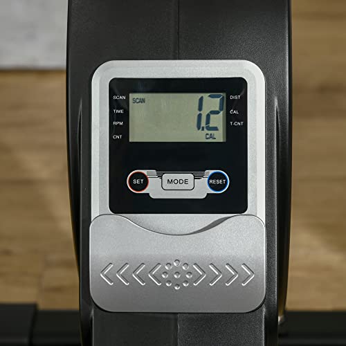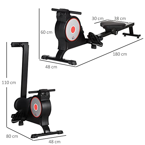 HOMCOM Vogatore Professionale per Casa con 8 Livelli di Resistenza Magnetica, Ruote e Monitor Digitale, Vogatore Pieghevole in Acciaio e ABS, 180x48x60cm, Nero e Grigio