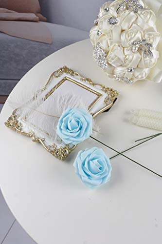 Homcomodar Fiori Artificiali Azzurro Rosa 30pcs Reale Cercando Rose Finte con Gambo per Matrimonio Fai da Te Mazzi Centrotavola Disposizione Partito Casa Arredamento