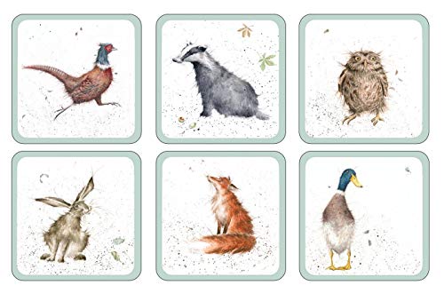 Homdox Pimpernel 10,5 x 10,5 cm MDF con retro in sughero Wrendale Designs sottobicchieri, set di 6, multicolore