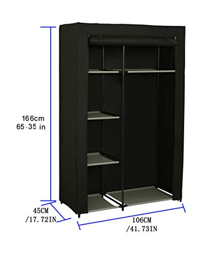 Home-Like non Tessuto Canvas Armadio Mobili Camera da Letto Bagagli con Hanging 105x45x158cm Ferroviario (Nero)