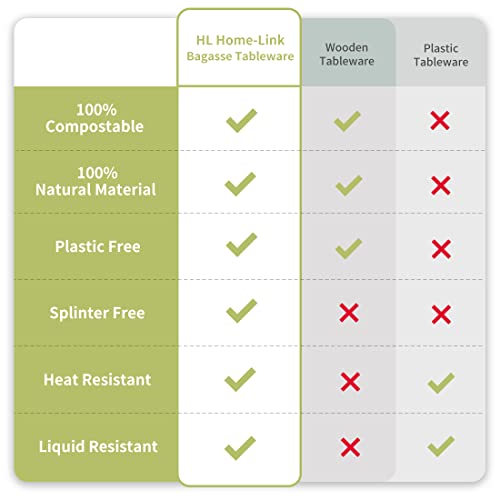 HL Home-Link Piatti di carta bagassa usa e getta compostabili - Confezione da 50 piatti da 23 cm 9" per impieghi gravosi 100% biodegradabili ecologici adatti al microonde e al congelatore