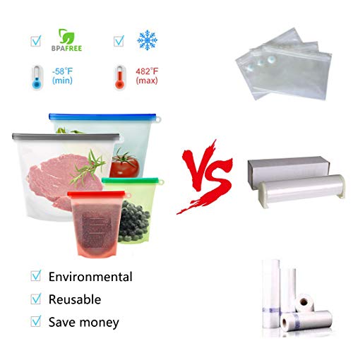 【Mantengono Cibi Freschi】: progettati con chiusura ermetica per creare sottovuoto e isolare il contatto tra cibi e aria, questi sacchetti silicone sono molto pratici da mantenere i cibi freschi senza perdita. Ideali per frutta, verdura, carne, spuntini o alimenti da mettere in frigorifero.