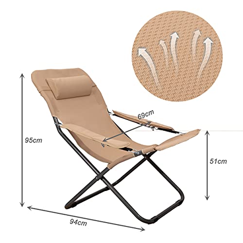 Homecall Folding Camping Chair with 2×1 textilene backrest Adjustable, Beige, Standard
