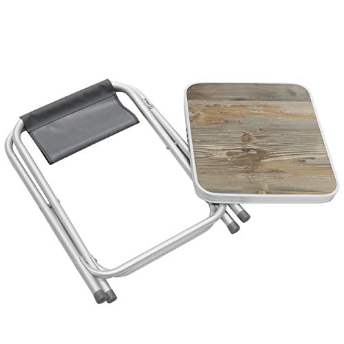 Homecall Sgabello Pieghevole da Campeggio in Alluminio con Piano in MDF Colore Grigio