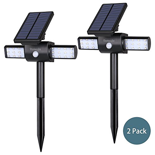 Homecube - Lampada solare da giardino, con sensore di movimento a 360°, impermeabile, 24 LED da giardino, con doppia testa e cavo USB (2 pezzi)