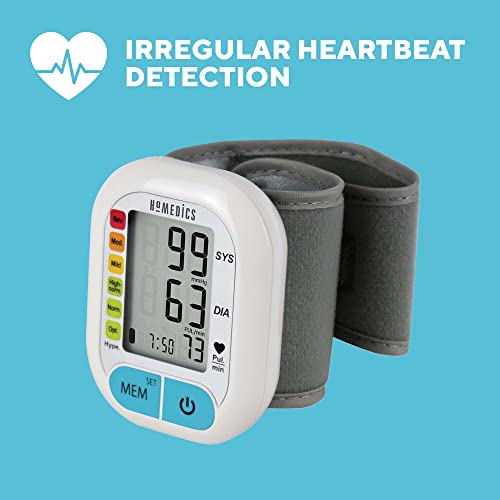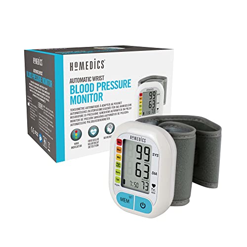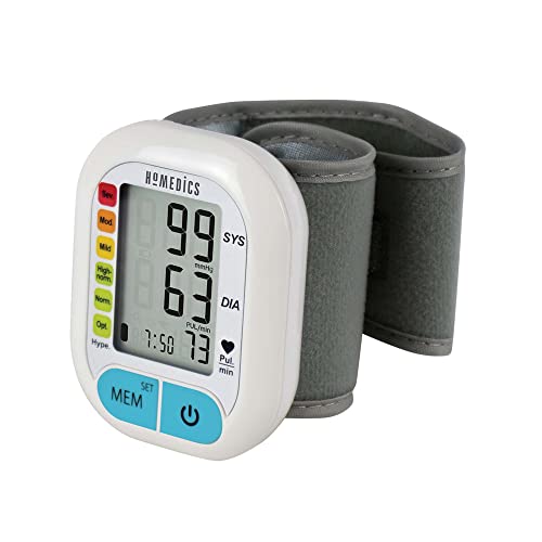 HoMedics, Misuratore di Pressione da Polso, Sfigmomanometro Automatico Compatto e Portatile, Veloce e Facile per Misurare e Memorizzare fino a 60 Misurazioni della Pressione Sanguigna