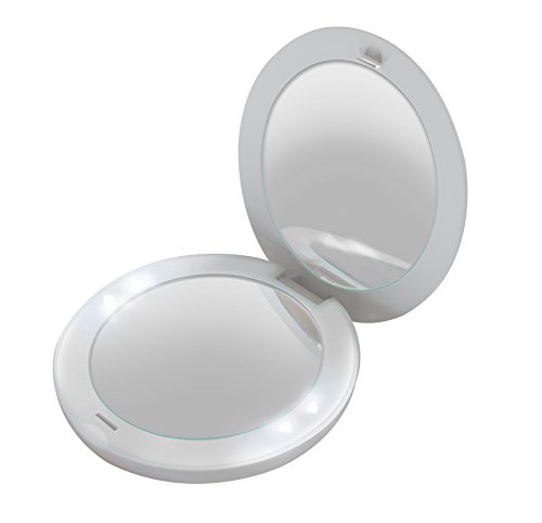 HoMedics Specchio Ingranditore Tascabile da Borsetta con Luce LED, Specchio Illuminato per il Trucco, 27x102x123 mm, Bianco
