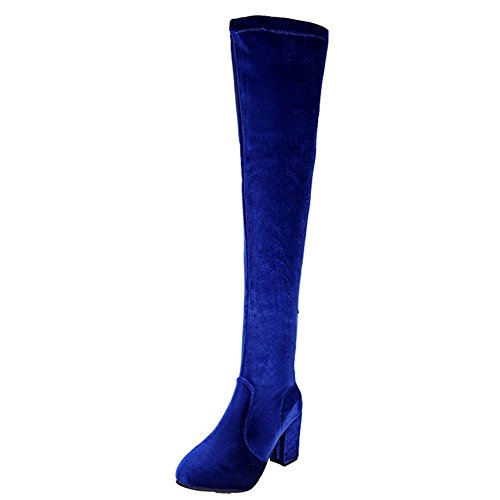 HOMEE Lady Thigh Boots Long Canister Size Punta a punta con i tacchi alti Scarpe fuori autunno e inverno,39 Eu,Blu