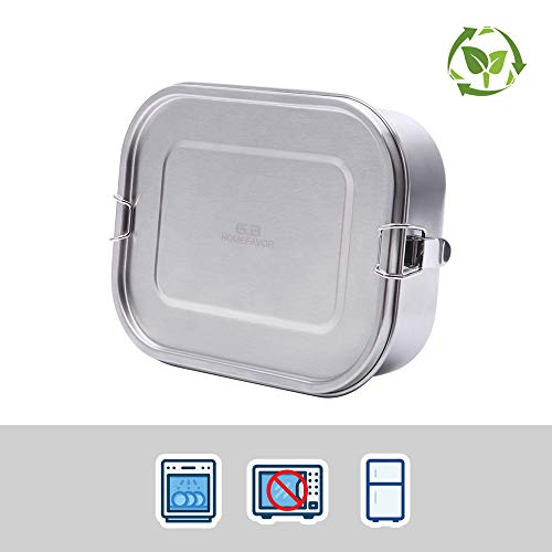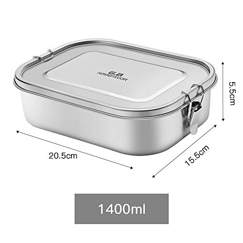 G.a HOMEFAVOR Bento - Scatola da pranzo in acciaio inossidabile, 1400 ml, grande, 5 scomparti, contenitore per il pranzo in metallo, scatola per il pranzo e il cibo Bento Box impermeabile per bambini