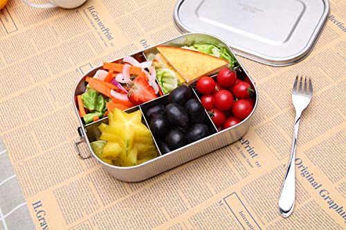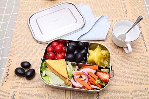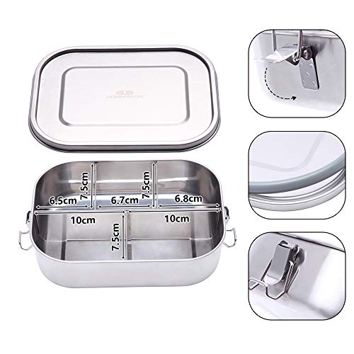 5 SCOMPARTI NON SFODERABILI: il design a 5 scomparti è utile per l'organizzazione dei pasti. Più varietà può essere confezionata in 5 scomparti perfettamente dosati ogni giorno per garantire un'alimentazione equilibrata. Perfetti contenitori per il pranzo in acciaio per bambini e adulti, uomo o donna. Il contenitore per alimenti in acciaio può contenere alimenti da 1400 ml come sandwich, pane, insalate, noodles, bistecca o frutta, ecc. Tenere presente che i divisori non sono impermeabili.
