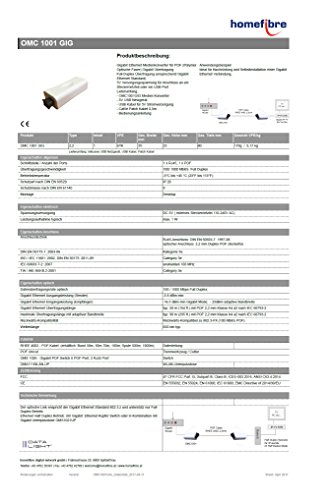 Homefibre OMC1001GIG-30SI POF - Convertitore multimediale Gigabit Ethernet, colore: Bianco