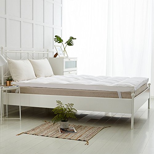 Homefoucs, coprimaterasso extra spesso da 7 cm, in morbida piuma d'oca bianca e piumino, 100% cotone, antiacaro e antiallergico Doppio bianco