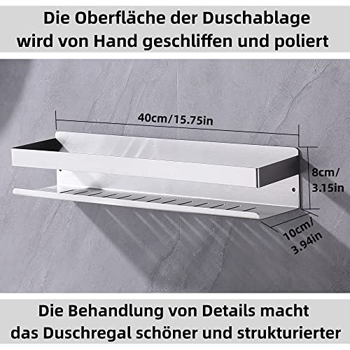 【Ampio Spazio di Archiviazione】: Dimensioni del prodotto: 40 * 10 * 8 cm. Lo scaffale per doccia offre spazio sufficiente per tutti gli accessori da bagno e può contenere fino a 10 kg. Multifunzionale e pratico, Questa mensola è la scelta ideale per risparmiare spazio.