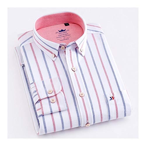 Homeilteds Camicia di Cotone Oxford a Righe Uomo Singola Patch Tasca Manicotto Lungo Standard-Fit Camicie Button-Down Casual (Color: 201806 31, Size: 41)
