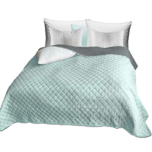 HOMELEVEL Copriletto Letto & Copridivano 240cm x 220cm Copridivano da letto Copridivano XXL Coperta da letto Mint/Grey