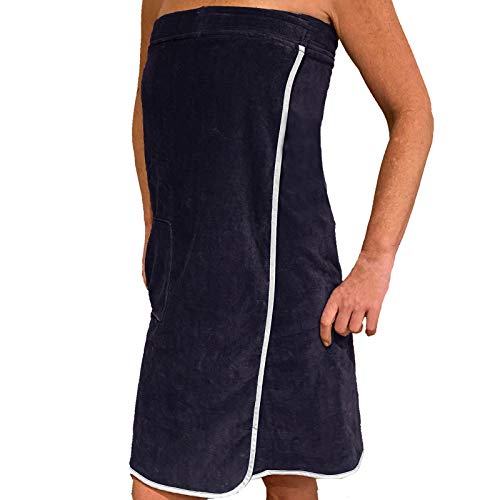 HOMELEVEL Kilt Sauna Donna Uomo - Asciugamano Sauna con Chiusura Apertura a Strappo e Tasca - Asciugamano Bagno Turco SPA - Telo Cotone Blu Scuro
