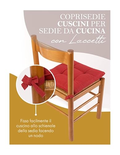 CUSCINI COPRISEDIE SEMPLICI DA UTILIZZARE: il nostro coprisedia imbottito seduta è provvisto di due laccetti posteriori che assicurano i cuscini sedie. Proteggi le tue sedie nel tempo con questi eleganti e copricuscini.