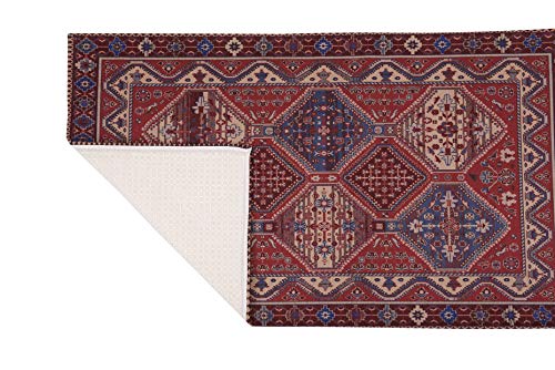 HomeLife Tappeto Stile Persiano/Orientale 60x110CM | Tappetino in Cotone per Salotto/Camera da Letto/Soggiorno con Fondo Antiscivolo | Scendiletto Stampa Digitale di Inspirazione Orientale Rosso