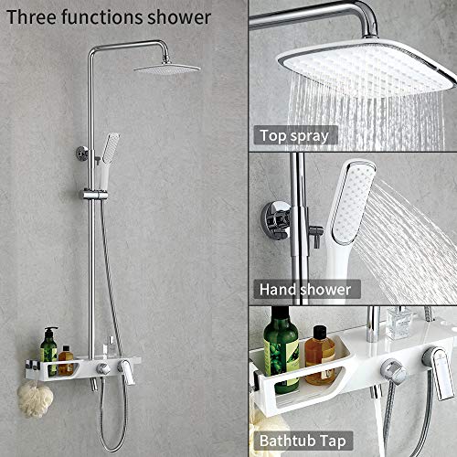 HOMELODY Colonna Doccia con Miscelatore Sistema doccia con mensola 3 Funzioni Set Doccia Completa,Doccia Soffione,Doccia a mano e Mensola Portaoggetti