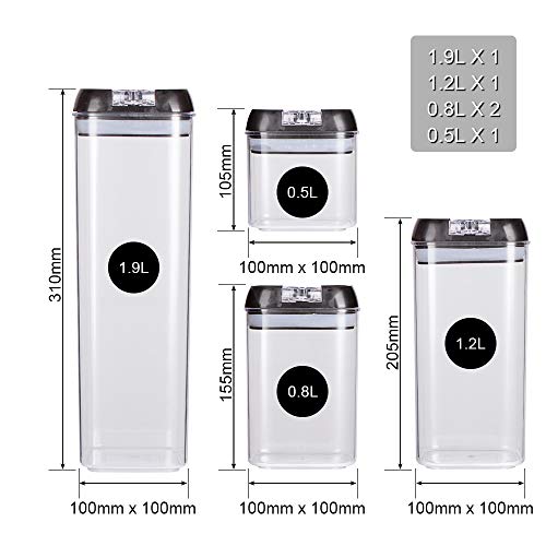 【Set di 5 barattoli】 5 contenitori di diverse dimensioni (0,5 l x 1, 0,8 l x 2, 1,2 l x 1, 1,9 l x 1), per soddisfare tutte le esigenze di conservazione delle casalinghe, possono anche contenere diversi articoli come cereali, farina, ecc