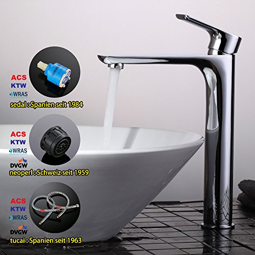 HOMELODY Miscelatore per Lavabo Bagno Alto Elegante Miscelatore Allungato Rubinetto Miscelatore Lavabo Monocomando Cromato per Lavabo