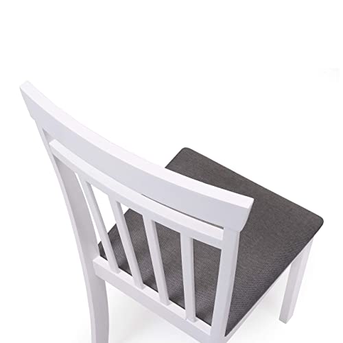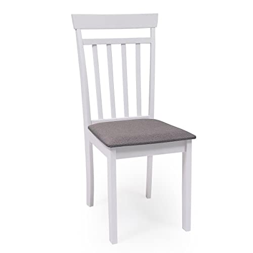 ✔️CARATTERISTICHE: Set di 2 sedie da pranzo o da cucina | Realizzato in legno e MDF | Laccato bianco | Seduta rivestita in tessuto grigio | Materiali: legno/tessuto | Colore: Bianco / Grigio