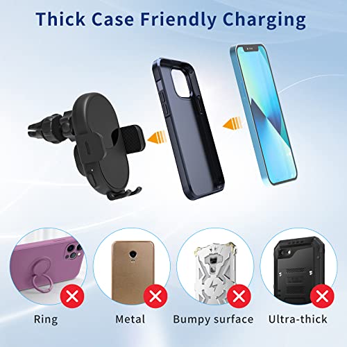 Design 2 in 1: la combinazione del caricabatterie wireless Qi e di un supporto per telefono da auto consente un'esperienza di ricarica sicura nel veicolo. L'indicatore LED blu si accende quando è in modalità di ricarica. Non è necessario togliere la custodia del telefono, ma ricordarsi di rimu