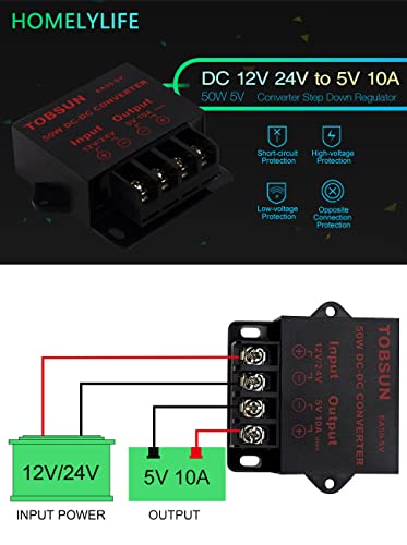 HOMELYLIFE Convertitore di Tensione DC DC 12V 24V a 5V 10A Convertitore di Potenza Regolatore Alimentatori Modulo Trasformatore (12/24V a 5V 10A)