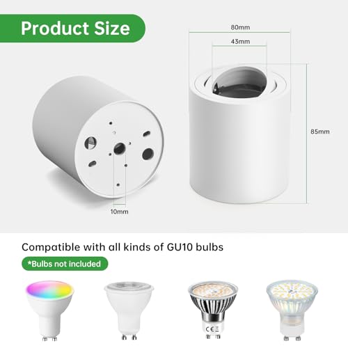 ✅Presa GU10: compatibile con qualsiasi lampadina GU10 entro 58 mm di altezza, è facile da installare o sostituire la sorgente luminosa. (❗❗ Lampadina GU10 non inclusa)
