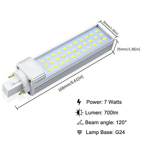 Homesally G24 Lampada LED PL A 2 Pin, 13W Lampadina LED Base G24D Girevole A 2 Pin G24D-1 G24D-2 G24D-3 26W CFL Di Ricambio Per Downlight Da Incasso/Montaggio A Superficie,Day light,2pcs