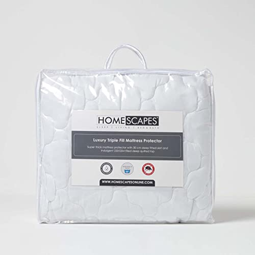 Aggiungendo un lussuoso strato di comfort al tuo letto, la tripla protezione di Homescapes è riempita con un'imbottitura super spessa da 220 GSM (3 volte la parte superiore standard media) che fornisce un cuscino e un supporto duraturo e protegge e prolunga la vita del tuo materasso.