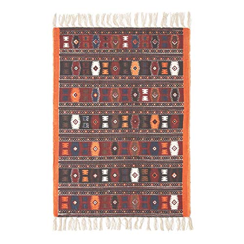 Homescapes 100% Cotton Kilim Printed Rug Terracotta Black and Brown Design. 70 x 120 cm Multi Purpose Mat. by Homescapes