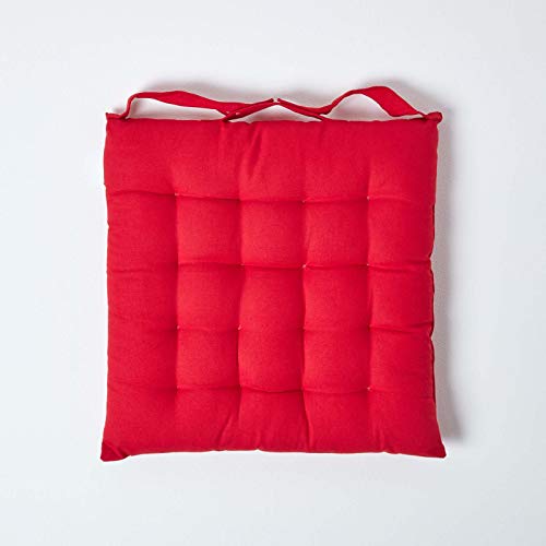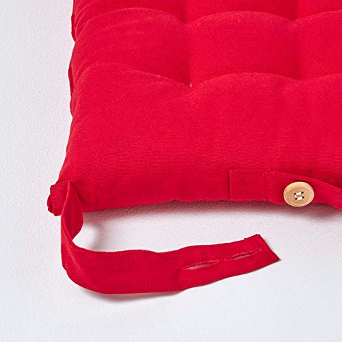 Homescapes - Cuscini per sedie da pranzo, al 100% in cotone, con fettucce, 40 x 40 cm, Red, Set di 4