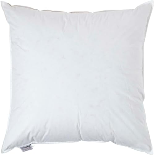 Homescapes, cuscino alla francese bianco in cotone naturale 100% con imbottitura in piume d'oca, antiacari, cuciture a punto doppio, anallergico, lavabile in lavatrice, White, 26 x 26" (65 x 65 cm)