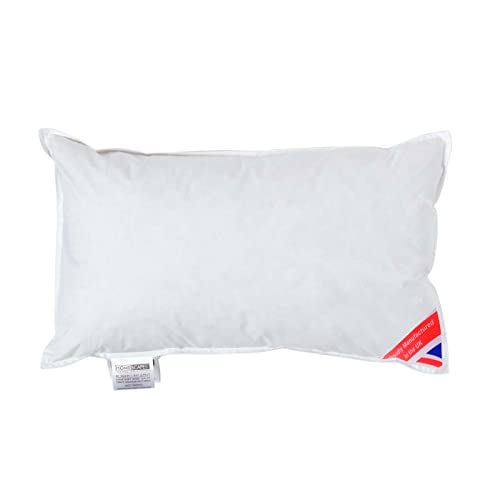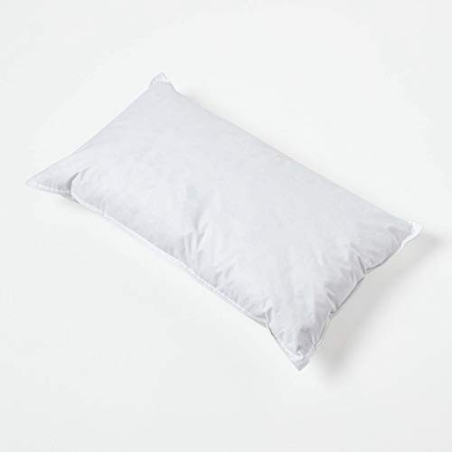 Homescapes, cuscino alla francese bianco in cotone naturale 100% con imbottitura in piume d'oca, antiacari, cuciture a punto doppio, anallergico, lavabile in lavatrice, White, 12 x 20 " (30 x 50 cm)