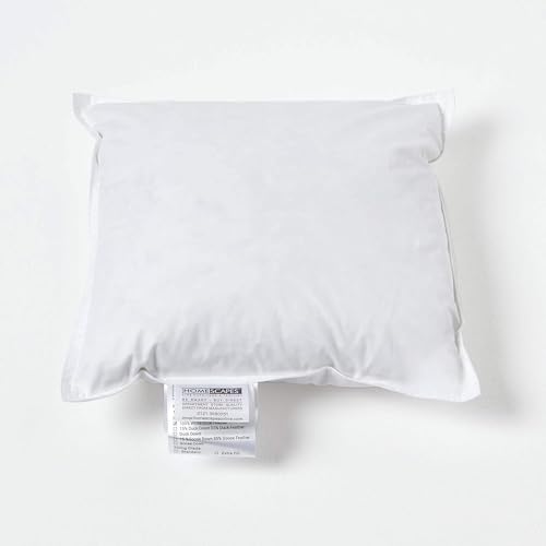 Homescapes, cuscino alla francese bianco in cotone naturale 100% con imbottitura in piume d'oca, antiacari, cuciture a punto doppio, anallergico, lavabile in lavatrice, White, 18 x 18" (45 x 45 cm)