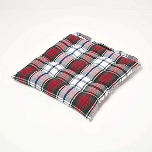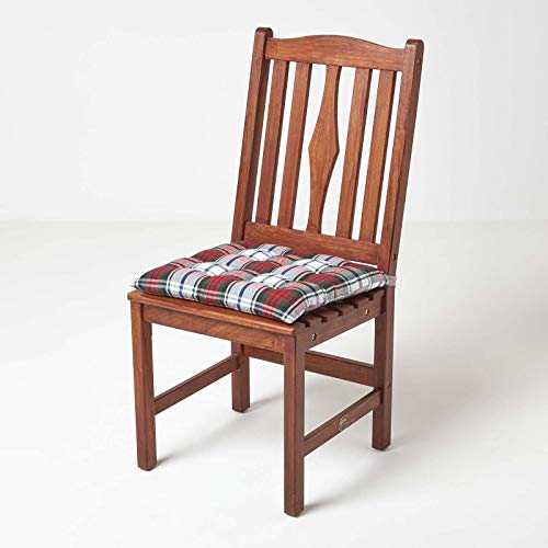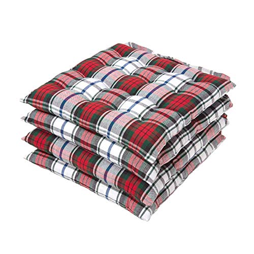 HOMESCAPES Cuscino quadrato per sedia 40 x 40 cm, set di 4 cuscini per sedia trapuntati in cotone, plaid scozzese rosso