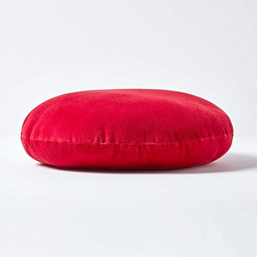 HOMESCAPES Cuscino rotondo 40 cm in puro cotone morbido tinta unita rosso decorazione divano o poltrona