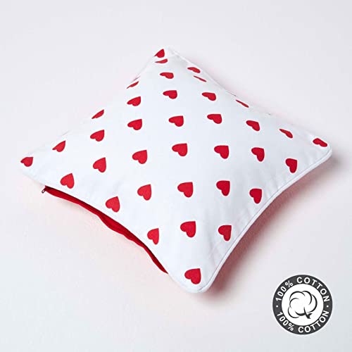 Homescapes Federa per cuscino con cuori rossi, cuscino decorativo 30 x 30 cm, per cuscino decorativo e cuscino per bambini in 100% cotone con chiusura lampo, fondo rosso