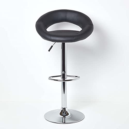 HOMESCAPES Sgabello da bar "Harrow" in ecopelle nera girevole altezza regolabile a gas e bancone da cucina imbottito con schienale, seduta alta 60-81 cm